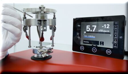 A leak test checks whether a component or assembly is gas- or liquid-tight. Pure helium is typically used as a tracer gas.